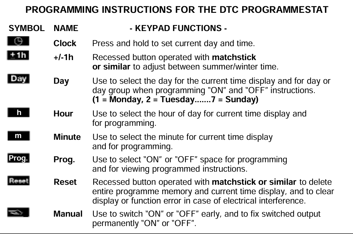 The timeswitch will correctly follow subsequent switching commands according to the programme entered, as they occur in real time.