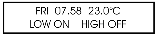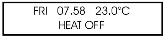 This screen shows the time, actual temperature and the heat relay status (On or Off).