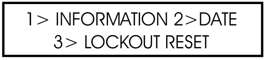 Pressing the Information button followed by option 1 will show the following display: