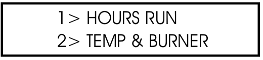 Pressing 2 shows you the last recorded temperature and burner status. Pressing the left arrow allows you to scroll through the records (15 minute intervals). Using the right arrow allows you to scroll back up to the last record.